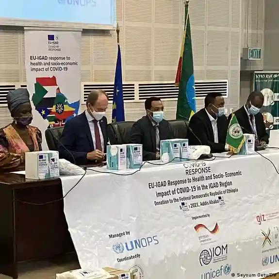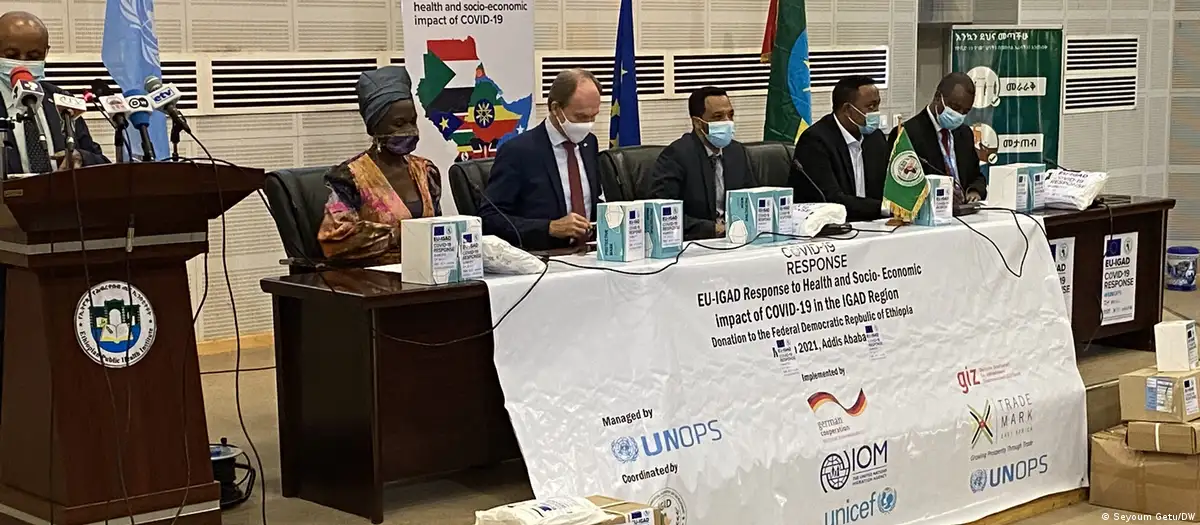 በምሥራቅ አፍሪካ በይነ መንግሥታት (IGAD) እና በአውሮጳ ሕብረት ኢትዮጵያ የኮሮና ተኅዋሲ ወረርሽኝን ለመግታት የምታደርገውን ጥረት የሚያግዝ የ60 ሚሊየን ብር ግምት ያለው የቁሳቁስ ድጋፍ አደረጉ። የተቋማቱ ባለሥልጣናት ዛሬ በአዲስ አበባ ለኢትዮጵያ ጤና ሚኒስቴር ድጋፉን ሲያስረክቡ ወረርሽኙ ሊያድርስ የሚችለውን ቀውስ ለመቋቋም መሰል ድጋፎችን ማድረግ እንደሚቀጥሉም አስታውቀዋል፡፡