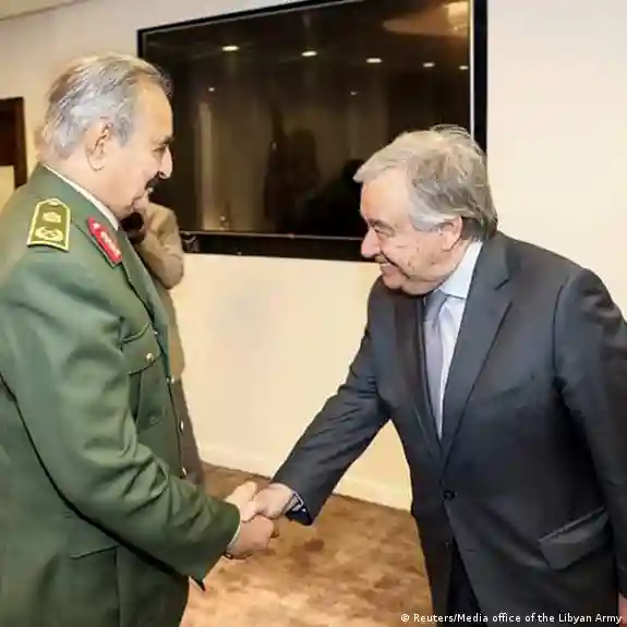 «የተባበሩት መንግስታት ድርጅት ዋና ፀሐፊን በምናስተናግድበት ወቅት የሊቢያ ሕዝብ መልካም ዜና ይጠብቅ ነበር።ይሁንና ጀርባችን ለመዉጋት ሴራ ተሸረበብን። የተቃጣብንን ሴራ አከሸፍን።ከሐፍጣር በተነገረዉ የጦርነት መልዕክት የታጀበዉን ወታደራዊ እንቅስቃሴ ስናይ በጣም ነዉ የተገርምነዉ።የሐፍጣር ቃላት የአምባገነኑን እና የፈላጭ ቆራጩን ዘመን የሚያስታዉሱ ናቸዉ።ሐፍጣር ድል እናደርጋለን፣ ከተማችንን ከአሸባሪዎችና ከወንጀለኞች ነፃ እናወጣለን እያሉ ነዉ።»