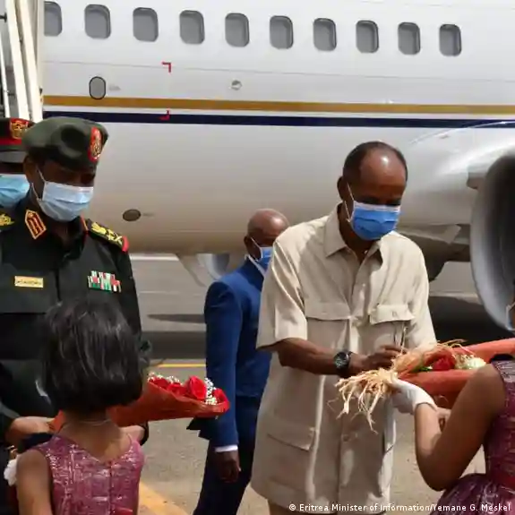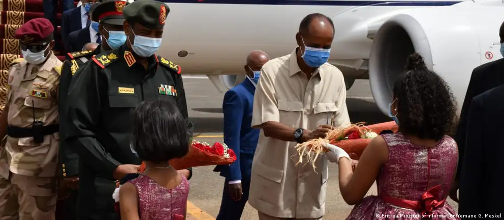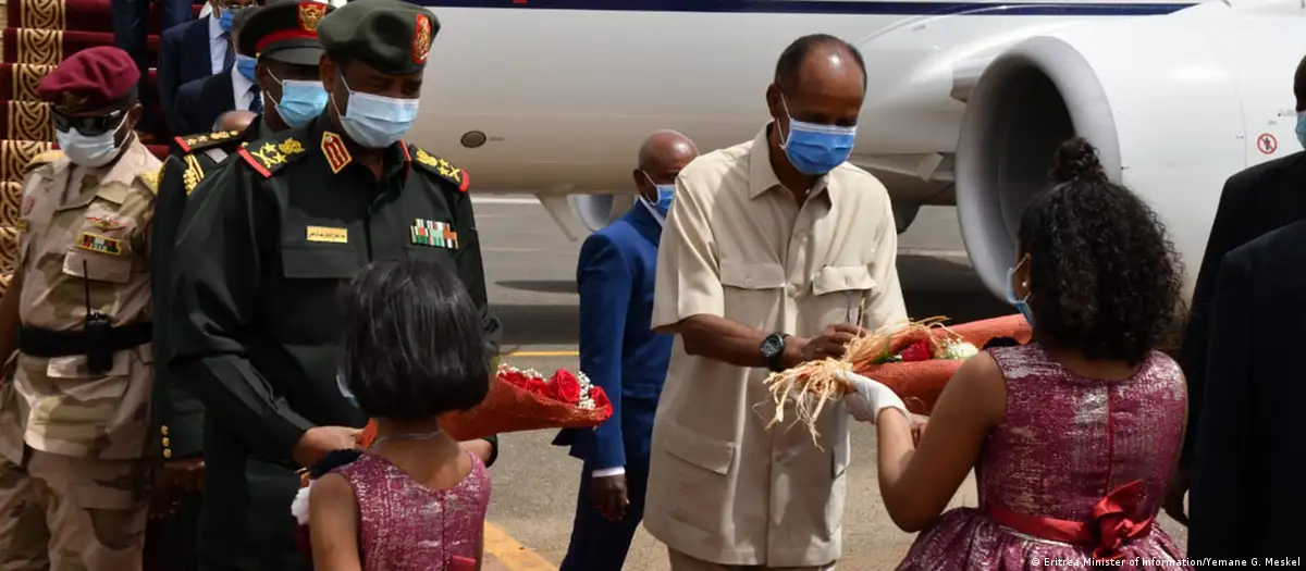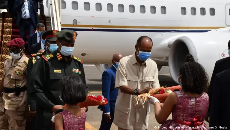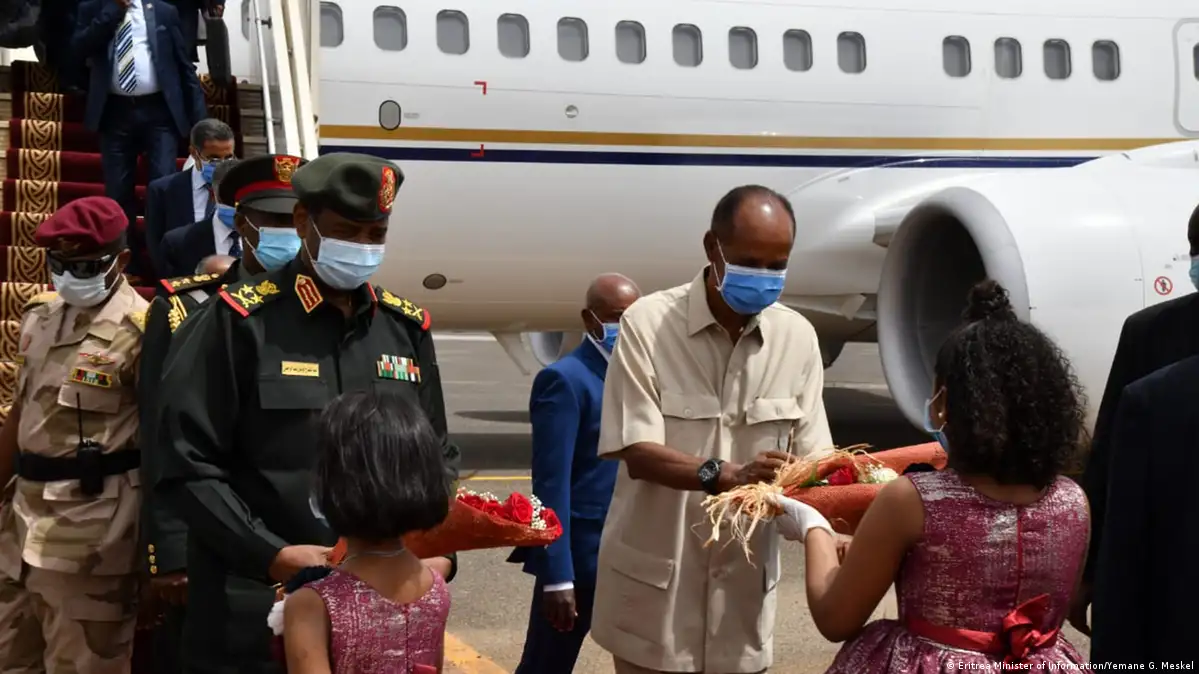 የኤርትራው ፕሬዚዳንት ኢሳያስ አፈወርቂ እና ሁለት ከፍተኛ ባለሥልጣናት ለሦስት ቀናት የሥራ ጉብኝት ሱዳን ኻርቱም ገቡ። ፕሬዚዳንቱ ኻርቱም ዓለም አቀፍ አውሮፕላን ማረፊያ ሲደርሱ የሱዳን ሉዓላዊ ምክር ቤት ፕሬዚዳንት ሉቴናንት ጄኔራል አብዱል ፋታሕ አል-ቡርሐን ተቀብለዋቸዋል። የኤርትራ ውጭ ጉዳይ ምኒስትር ኦስማን ሳሌሕ እና የፕሬዚዳንትቱ አማካሪ የማነ ገብረአብ ከልዑካን ቡድኑ አባላት መካከል ይገኙበታል። ኢሳያስ በኻርቱም ቆይታቸው ከሉቴናንት ጄኔራል አብዱል ፋታሕ አል ቡርሐን እና ምክትላቸው ሉቴናንት ጄኔራል መሐመድ ሐምዳን ዳጋሎ እንደሚወያዩ የሱዳን ሉዓላዊ ምክር ቤት አስታውቋል። ኢሳያስ እና የሱዳን ባለሥልጣናት በሁለቱ አገሮች ግንኙነት ላይ ይነጋገራሉ ቢባልም ስለጉብኝታቸው በዝርዝር የቀረበ ማብራሪያ የለም።
