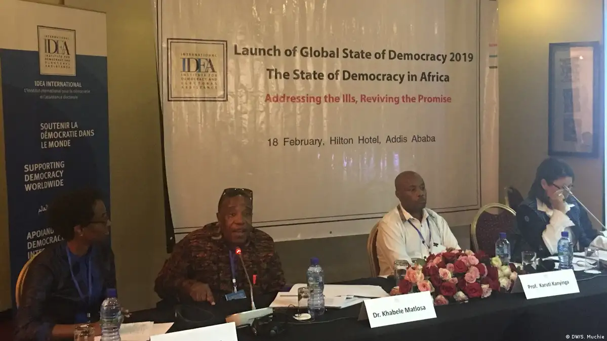 ዓለም አቀፍ የዴሞክራሲና የምርጫ ተቋም የተባለ ድርጅት እንደ ጎርጎሪዮስ አቆጣጠር የ2019ን የዓለም የዴሞክራሲ ደረጃ ዛሬ በአዲስ አበባ ይፋ አድርጓል። ተቋሙ በዘገባው፦ ኢትዮጵያ የምትገኝበት ቃጣና የብዙ ፍላጎቶች መራኮቻ በመኾኑ ዲሞክራሲያዊ ባሕልን ለመገንባት -ከባድ የቤት ሥራ ይጠብቃታል ተብሏል። በዘገባው ዐሥራ አንድ የአፍሪቃ አገሮች ዴሞክራሲያዊ ስርአት የሌላቸው ተብለው ሲለዩ፣ ከግማሽ በላይ የሚሆኑት የዓለም አገሮች ግን ዴሞክራሲያዊ ስርዓት የዘረጉ መሆናቸውም ተገልጿል። የአዲስ አበባው ወኪላችን ሰለሞን ሙጬ ቀጣዩን ዘገባ ልኮልናል።
