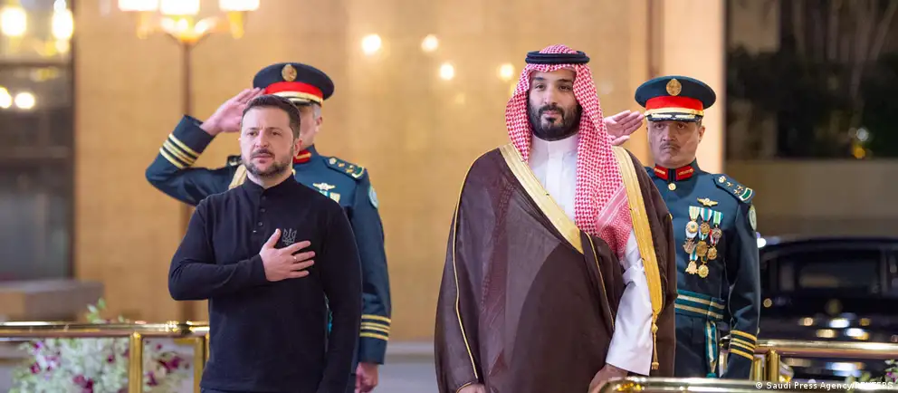 ولي العهد السعودي محمد بن سلمان في استقباله للرئيس الأوكراني فلودومير زيلينسكي (العاشر من مارس 2025)صورة من: Saudi Press Agency/REUTERS