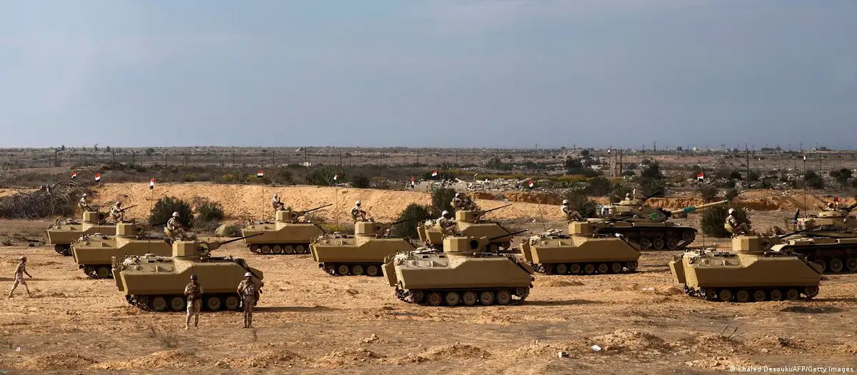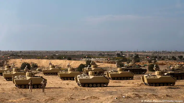 قال مسؤولان إسرائيليان إن الجيش المصري يقوم في سيناء بإنشاء بنية تحتية عسكرية، يمكن استخدام بعضها لأغراض هجومية، في مناطق يسمح فيها بموجب الاتفاقية بحمل أسلحة خفيفة فقط.صورة من: Khaled Desouki/AFP/Getty Images
