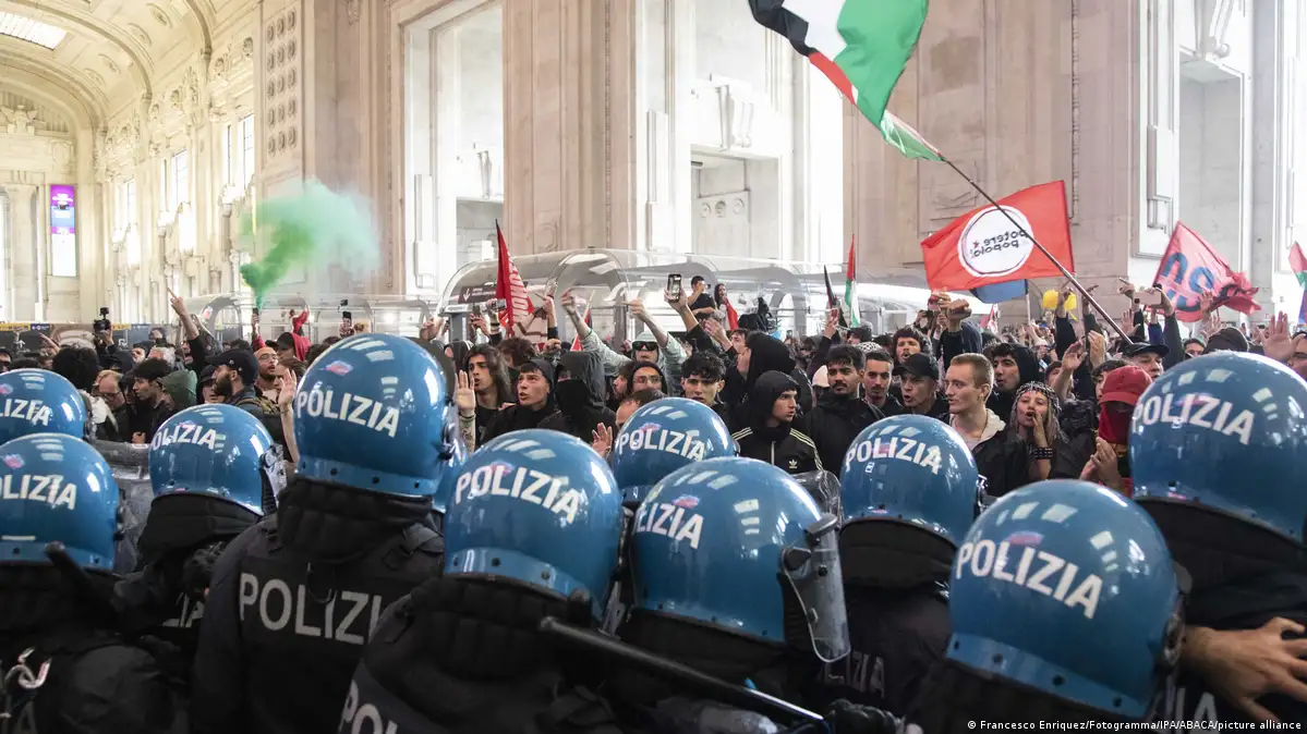 سياسةإيطالياإيطاليا: تظاهرات احتجاج ضد الحرب في قطاع غزة01:49This browser does not support the video element.سياسةإيطاليا2025/9/23٢٣ سبتمبر ٢٠٢٥عشرات المدن الإيطالية شهدت الإثنين احتجاجات غاضبة وتظاهرات تحول بعضها إلى اشتباكات مع القوى الأمنية. أعمال الاحتجاج هذه، دعمتها نقابات شعبية، من القطاعين العام والخاص للضغط على الحكومة الإيطالية من أجل اتخاذ خطوات ملموسة لوقف الحرب في قطاع غزة.نسخ الرابطإعلان
