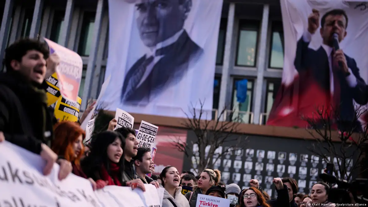 سياسةتركياأردوغان يتخلص من منافسه أكرم أوغلو باعتقاله02:36This browser does not support the video element.سياسةتركيا2025/3/20٢٠ مارس ٢٠٢٥أدى اعتقال رئيس بلدية اسطنبول أكرم أوغلو لمزاعم بالفساد إلى أزمة سياسية في تركيا. ويعتبر أوغلو المنافس الوحيد القادر على هزيمة أردوغان في انتخابات الرئاسة.نسخ الرابطإعلان