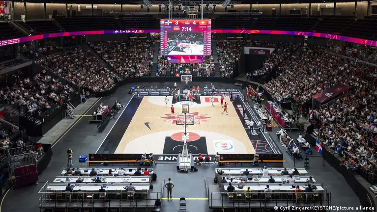 أعلن الاتحاد الدولي للسلة هزيمة المنتخب الأردني بعد انسحابه أمام المنتخب الإسرائيليصورة من: Cyril Zingaro/KEYSTONE/picture alliance