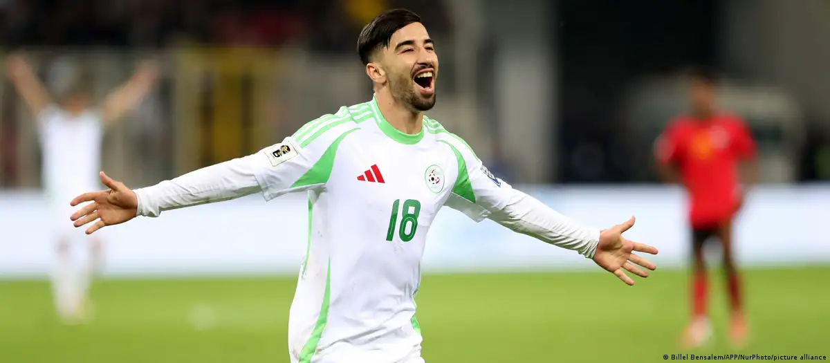 تألق محمد الأمين عمورة نجم فولفسبورغ الألماني وسجل هدفين أمام الصومال ليصعد بمنتخب الجزائر إلى مونديال 2026. صورة من: Billel Bensalem/APP/NurPhoto/picture alliance