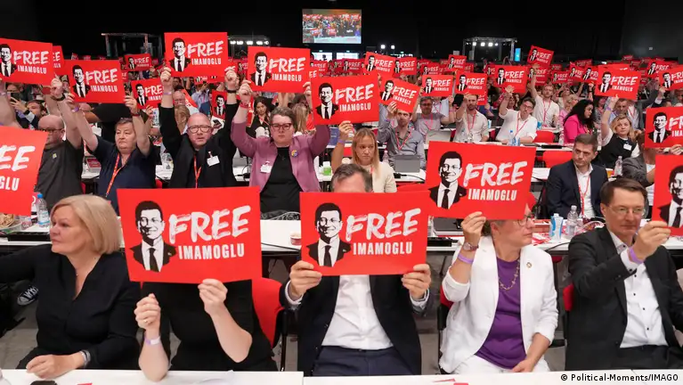 دعا المؤتمر العام للحزب الاشتراكي الديمقراطي في برلين إلى الإفراج الفوري عن رئيس بلدية إسطنبول، أكرم إمام أوغلو.صورة من: Political-Moments/IMAGO