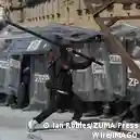 شبان وصحفيون يحتمون وراء الجدران من القنابل المسيلة للدموع التي ألقتها شرطة مدغشقر على المحتجين. وقد أعلنت المفوضية العليا للأمم المتحدة لحقوق الإنسان مقتل 22 شخصاً على الأقل واصابة أكثر من مائة آخرين خلال التظاهرات المناهضة للحكومة في مدغشقر. ورغم أن رئيس البلاد حل الحكومة فإن الاحتجاجات الشعبية لم تهدأ.