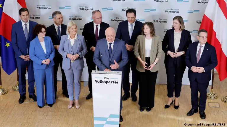 سيتولى حزب الشعب النمساوي (ÖVP) قيادة الحكومة، حيث سيصبح زعيمه، كريستيان شتوكر، مستشارًا للنمسا، كما سيتولى حزبه مسؤولية وزارتي الداخلية والدفاع.صورة من: Leonhard Foeger/REUTERS