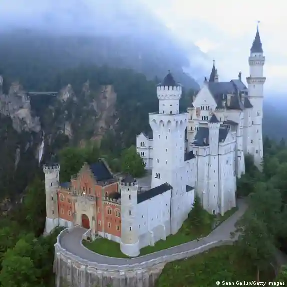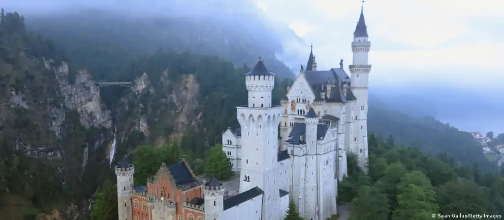 بناء من النصف الثاني للقرن التاسع عشر - قلعة نويشفانشتاين الشهيرة (Neuschwanstein) في ولاية بافاريا الألمانية على خلفية جبال الألب الخلابةصورة من: Sean Gallup/Getty Images