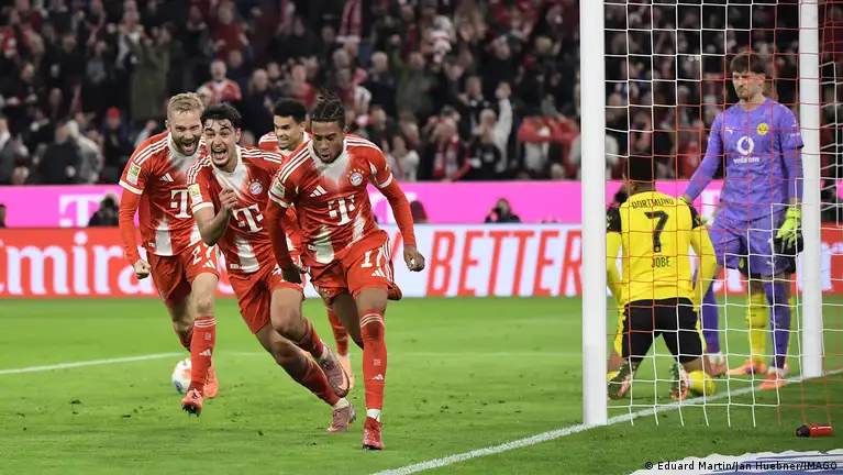 حقق بايرن ميونيخ فوزا صعبا على غريمه اللدود دورتموند في كلاسيكر الكرة الألمانية، ليحلق الفريق البافاري بعيدا في الصدارة، فيما تقدم لايبزغ إلى المركز الثاني مستغلا تعثر دورتموند؟