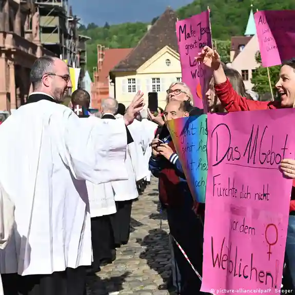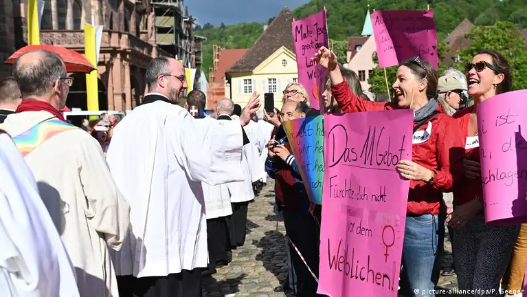 في تظاهرة بالعاصمة برلين طالب مناصرو حركة "ماريا 2.0" الكاثوليكية بأن يتاح للنساء أن يصبحن قسيسات على قدم المساواة مع الرجال وأن يتم اسقاط شرط العزوبة الإجبارية.