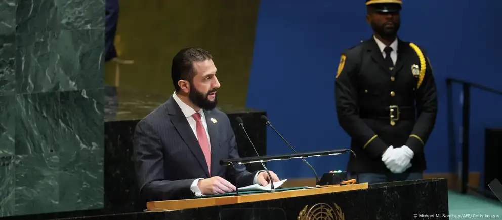 وجود الرئيس السوري الانتقالي أحمد الشرع في الجمعية العامة للأمم المتحدة في نيويورك يشكّل علامة فارقة في مسيرته وفي الاعتراف بسوريا، وخلال خطابه في الدورة الثمانين للجمعية العامة قال الشرع: "سوريا تستعيد مكانتها الصحيحة بين دول العالم".