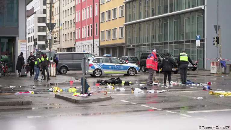 وكان طالب لجوء منحدر من أفغانستان يبلغ من العمر 24 عاما، قد اقتحم صباح اليوم مسيرة احتجاجية لنقابة "فيردي" العمالية مما أدى إلى إصابة ما لا يقل عن 28 شخصا. وبعد وقت قصير من ذلك، تحدث رئيس وزراء ولاية بافاريا ماركوس سودر (من الحزب المسيحي الاجتماعي) عن "هجوم محتمل".