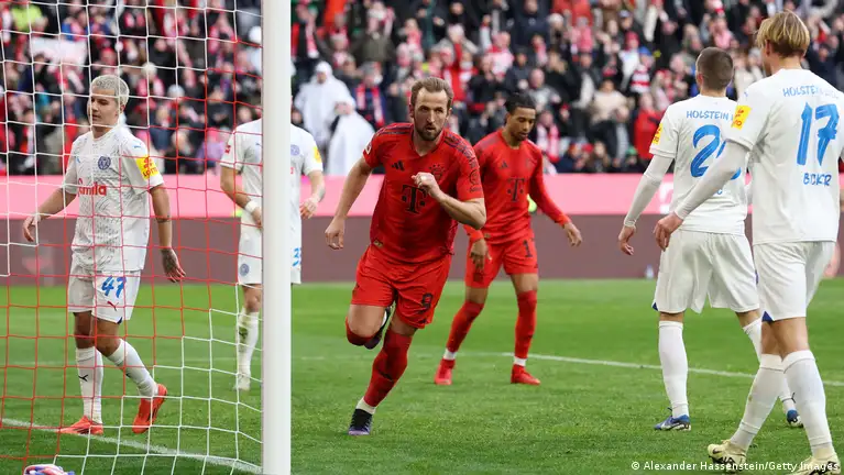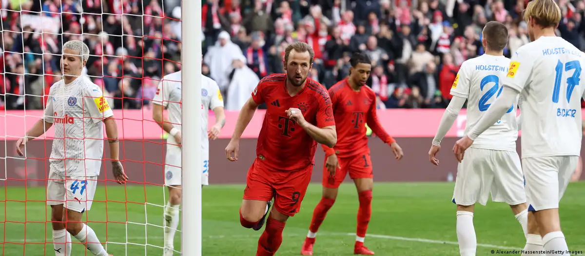 حقق بايرن ميونيخ فوزه السادس تواليا في الدوري الألماني لكرة القدم (بوندسليغا) على حساب ضيفه هولشتاين كيل 4-3 السبت (الأول من فبراير/شباط 2025) في المرحلة العشرين. وعلى وقع ذلك، واصل بايرن نتائجه الجيدة في الدوري وعمق جراح هولشتاين كيل السابع عشر قبل الأخير، وذلك بفضل ثنائية للمهاجم الانجليزي هاري كاين في مباراته الخمسين في البوندسليغا. وبهذا الفوز، اتسع الفارق بين النادي البافاري وباير ليفركوزن حامل اللقب وإن كان مؤقتا إلى تسع نقاط.