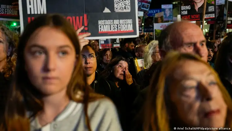 حضّ منتدى عائلات الرهائن والمفقودين في إسرائيل في بيان أصدره الجمعة الحكومة الإسرائيلية على إتمام اتفاق وقف إطلاق النار في غزة وتسريعه.صورة من: Ariel Schalit/AP/dpa/picture alliance