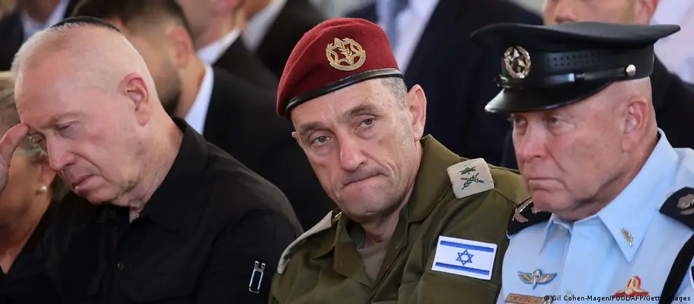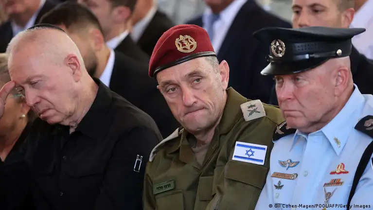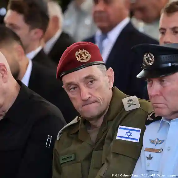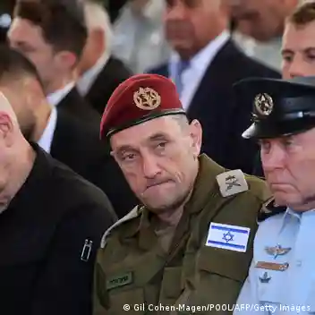 رئيس أركان الجيش الإسرائيلي، هيرتسي هاليفي (وسط الصورة) أعلن الشهر الماضي استقالته من منصبه بسبب فشل الجيش تحت قيادته في التعامل مع هجوم 7 أكتوبر/ تشرين الأول الذي شنته حماس.صورة من: Gil Cohen-Magen/POOL/AFP/Getty Images