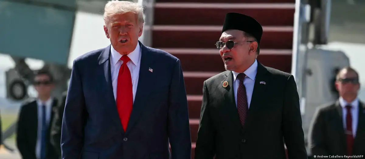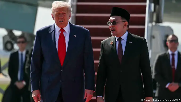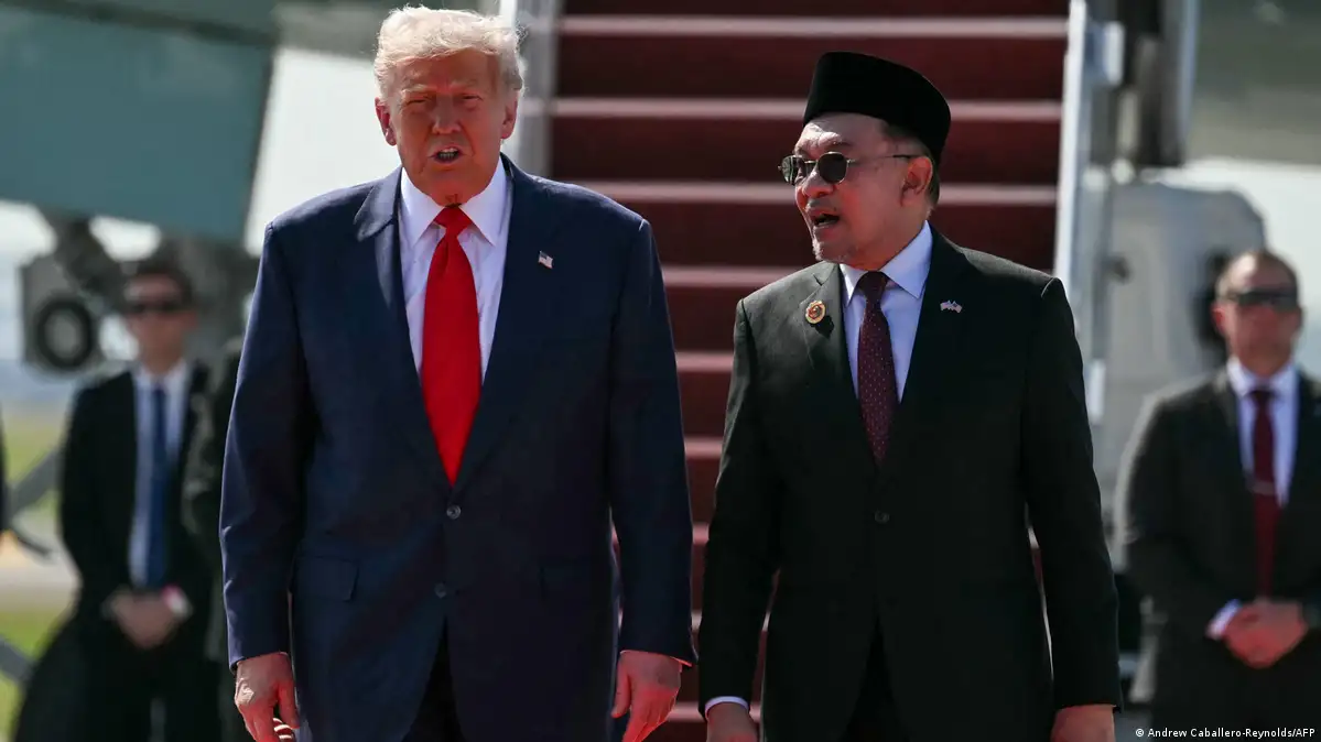 وصل الرئيس الأميركي دونالد ترامب صباح الأحد (26 أكتوبر/تشرين الأول 2025) إلى ماليزيا في المحطة الأولى من جولة أسيوية جديدة يجري خلالها محادثات تجارية تنطوي على رهانات اقتصادية وسياسية كبرى مع نظيره الصيني شي جينبينغ. واستقبل ترامب في مطار كوالالمبور من قبل رئيس الوزراء الماليزي أنور إبراهيم على إيقاع موسيقى ورقص تراثي.