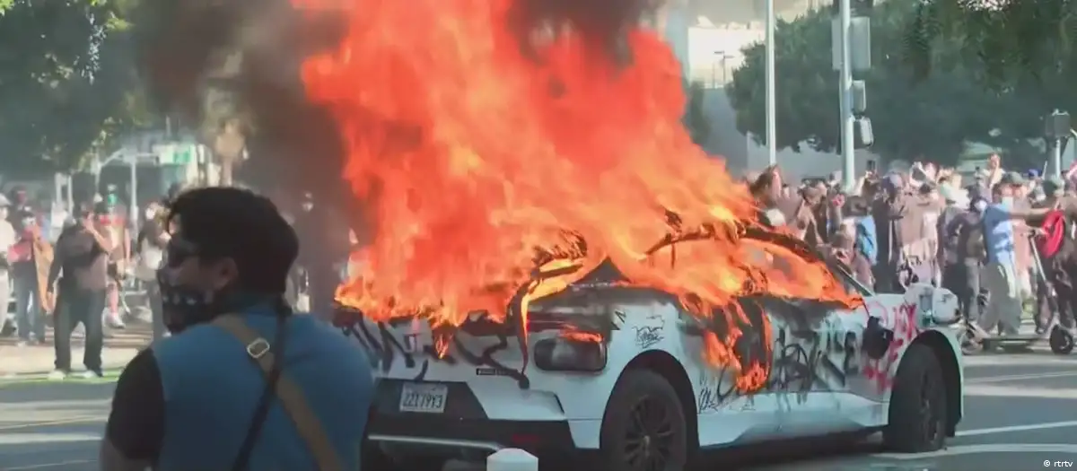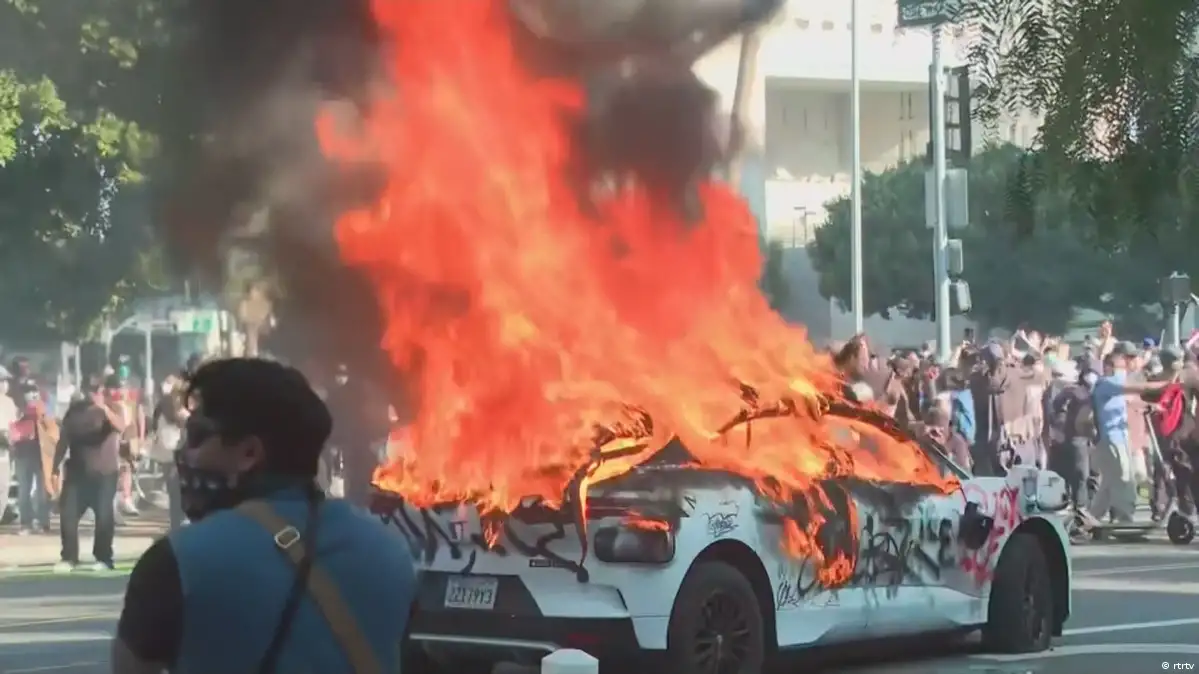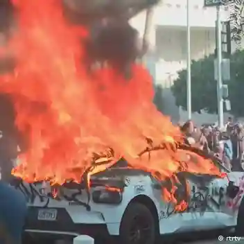 ساد التوتر في لوس أنجليس اليون الإثنين غداة اشتباكات عنيفة بين المتظاهرين وقوات الأمن على خلفية عمليات دهم تنفّذها سلطات الهجرةصورة من: rtrtv