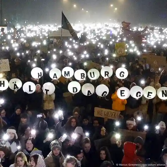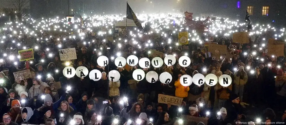 مشهد من مظاهرة هامبورغ ضد سياسة الحزب المسيحي الديمقراطي في تشديد سياسة الهجرة بدعم من حزب البديل من أجل ألمانياصورة من: Marcus Golejewski/dpa/picture alliance