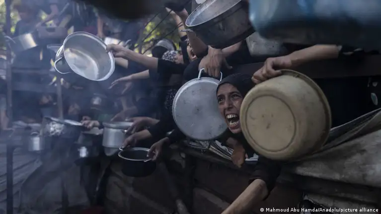 تشير تقديرات الأمم المتحدة إلى أن الظروف الحالية في غزة تهدد بدفع ما يقرب من نصف مليون شخص إلى المجاعة بحلول نهاية سبتمبر/ أيلول.صورة من: Mahmoud Abu Hamda/Anadolu/picture alliance