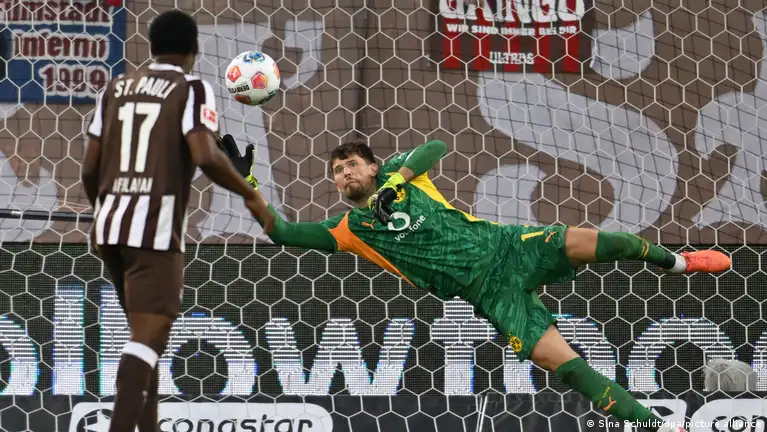 لاعب سانت باولي إيريك سميث خطف هدف التعادل القاتل في الدقيقة 89 في وقت بدا فيه أن دورتموند في طريقه لحسم الفوز بالجولة الافتتاحية.صورة من: Sina Schuldt/dpa/picture alliance