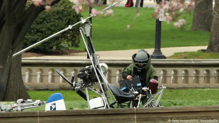 أوقف رجل كان يحتج على فساد النظام السياسي الأميركي أمس الأربعاء (16 أبريل/نيسان) بعد أن هبط بمروحية صغيرة بالقرب من الكابيتول مقر الكونغرس في قلب العاصمة الفدرالية واشنطن ما أدى إلى إطلاق إنذار أمني في هذه المنطقة الحساسة للغاية. وأكدت شرطة الكابيتول في بيان توقيف الطيار دوغلاس مارك هيوز وهو من ولاية فلوريدا بجنوب شرق الولايات المتحدة. وأوضحت الشرطة أن فريقا لإزالة المتفجرات تفحص بجهاز روبوت لفترة وجيزة المروحية التي كانت بمقعد واحد، لكنه "لم يجد أي شيء خطر".