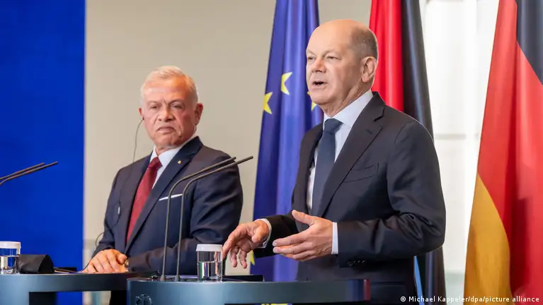 وخلال مؤتمر صحافي في برلين إلى جانب العاهل الأردني عبدالله الثاني، قال شولتس "المطلوب الآن هو العودة إلى وقف إطلاق النار والإفراج عن جميع الرهائن"، داعيا إلى "مفاوضات جادة بهدف الاتفاق على نظام لما بعد الحرب في غزة يحمي أمن إسرائيل".