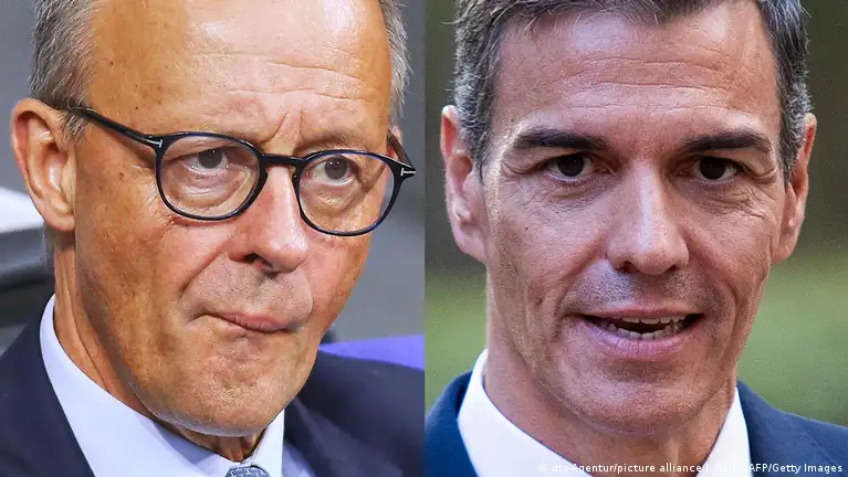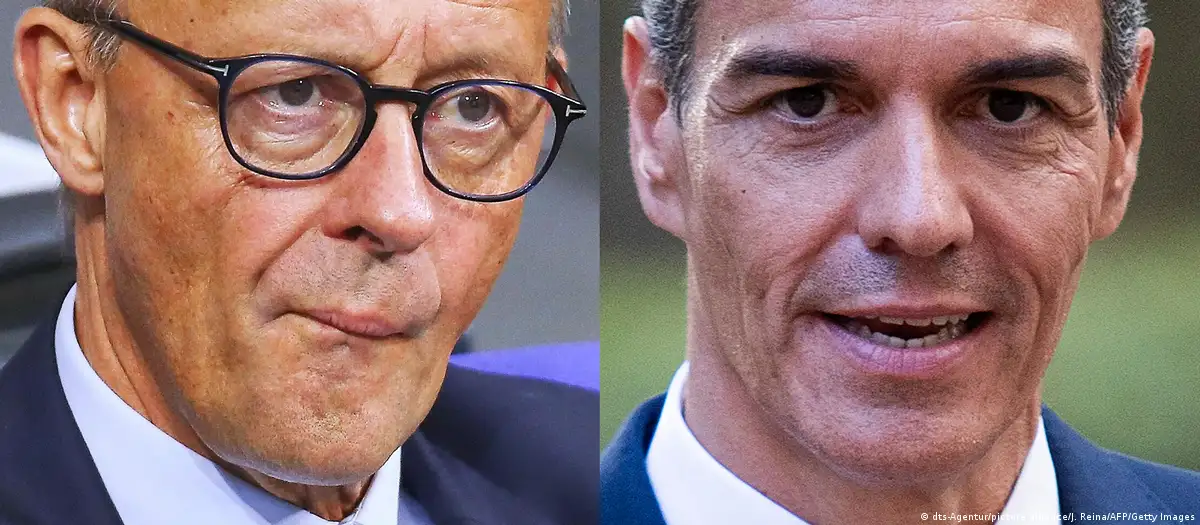 ينتقد كل من (المستشار الألماني فريدريش) ميرتس و (رئيس الوزراء الإسباني بيدرو) سانشيز بشدة العملية العسكرية الإسرائيلية في قطاع غزة. وبينما لا تؤيد ألمانيا أي عقوبات ضد إسرائيل عدا تقييد صادرات الأسلحة، اتخذت إسبانيا إجراءات ملموسة في وقت مبكر. ففي عام 2024، على سبيل المثال، أصبحت إسبانيا أول دولة عضو في الاتحاد الأوروبي تنضم إلى دعوى جنوب أفريقيا ضد إسرائيل أمام محكمة العدل الدولية بشأن الإبادة الجماعية.