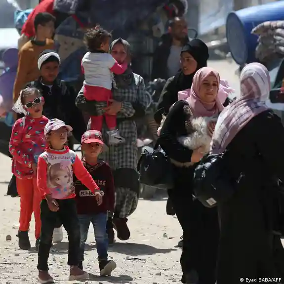 فر مئات الآلاف من سكان قطاع غزة، الخميس (الثالث من أبريل/ نيسان 2025)، في واحدة من أكبر موجات النزوح الجماعي منذ اندلاع الحرب مع تقدم القوات الإسرائيلية وسط الأنقاض في مدينة رفح التي أعلنتها إسرائيل ضمن نطاق "منطقة أمنية" تعتزم السيطرة عليها.