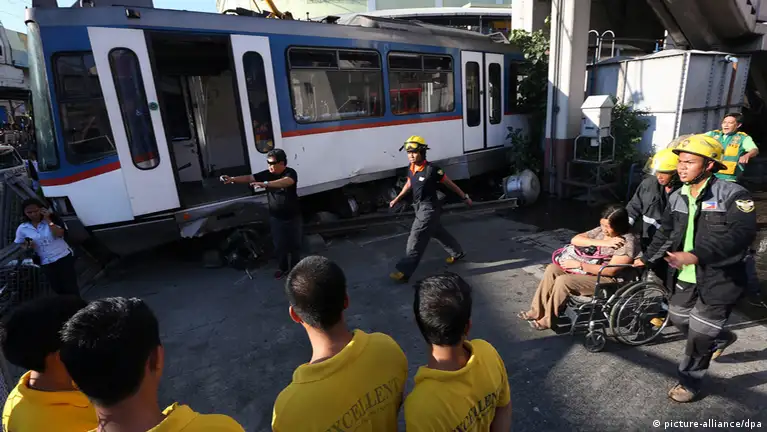 ذكر مسؤولون في الفيليبين أن قطاراً تجاوز مصدات نهاية الخط الحديدي ليصل إلى شارع مزدحم بالحركة في مانيلا مما أدى إلى إصابة 28 شخصاً.