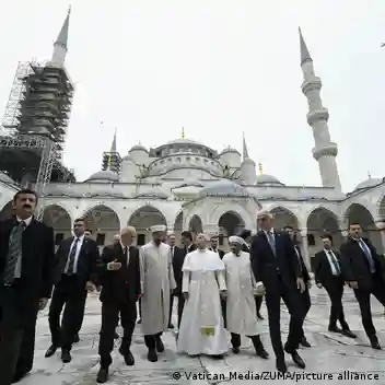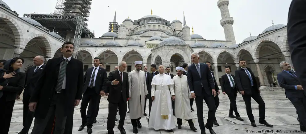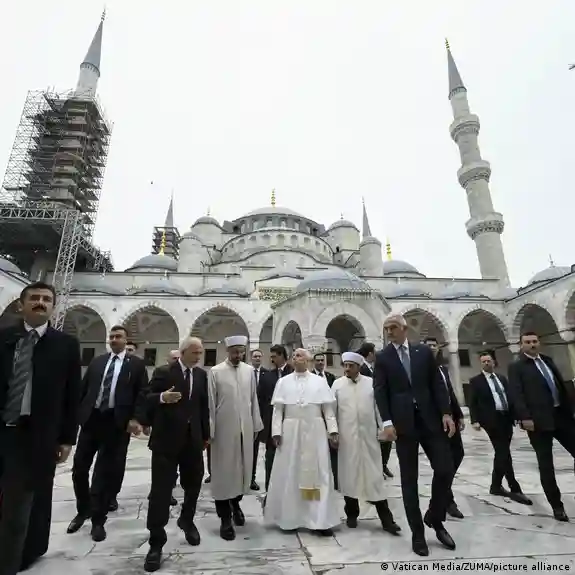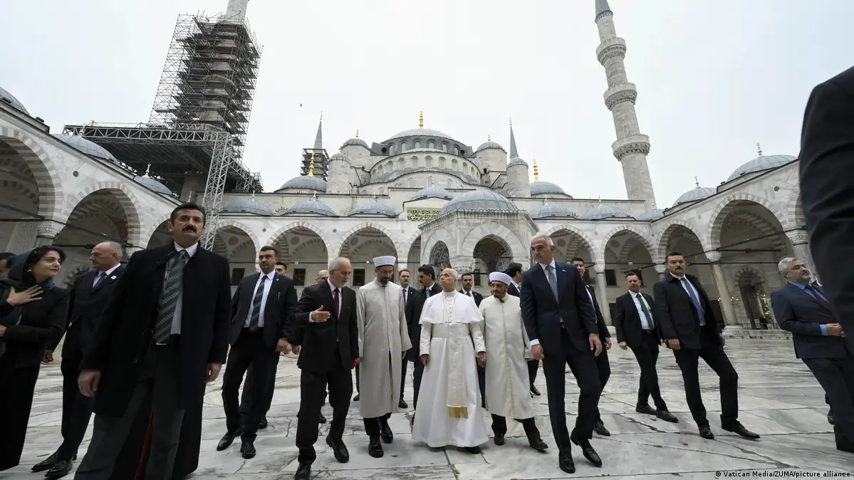 يتبع البابا ليو بزيارته خطى أسلافه السابقين الذين قاموا جميعا بزيارات هامة لمسجد السلطان أحمد (الجامع الأزرق في إسطنبول) كبادرة احترام للأغلبية المسلمة في تركيا.صورة من: Vatican Media/ipa-agency/picture alliance