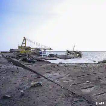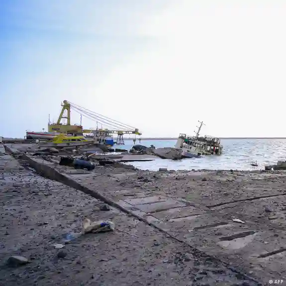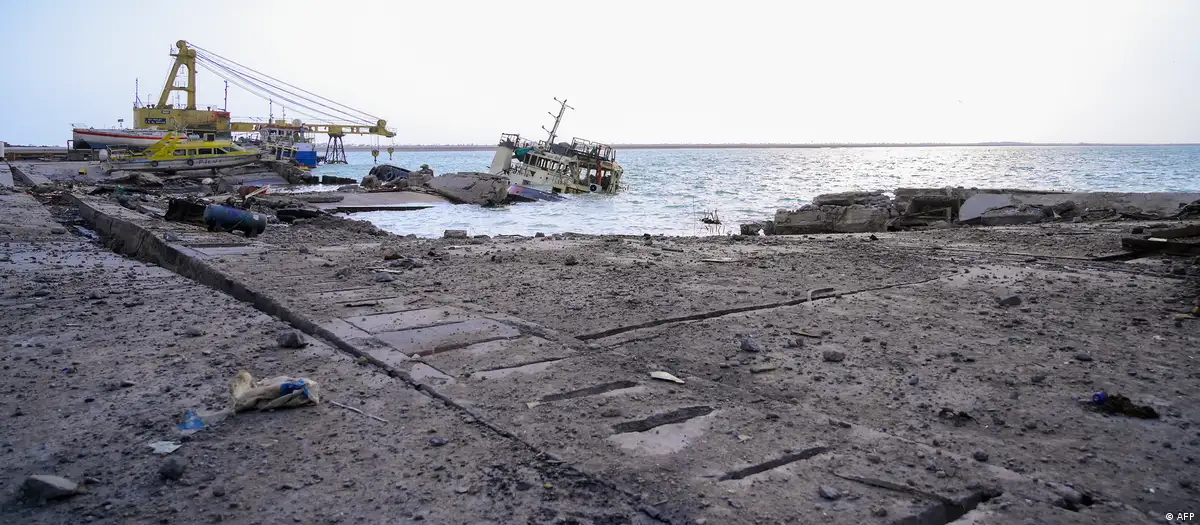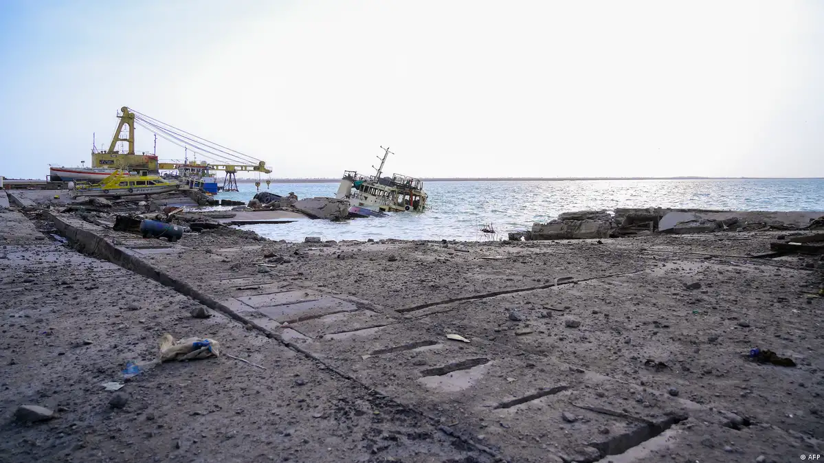 أشار الجيش الإسرائيلي إلى أن البنية التحتية المستهدفة شملت "معدات بناء تُستخدم لإعادة بناء مرافق الميناء" و"حاويات وقود، وسفنا تُستخدم في أنشطة عسكرية وأعمال عدائية ضد دولة إسرائيل". صورة من الأرشيف لدمار في ميناء الحديدة اليمني بعد غارات جوية إسرائيلية. (6/5/2025)صورة من: AFP