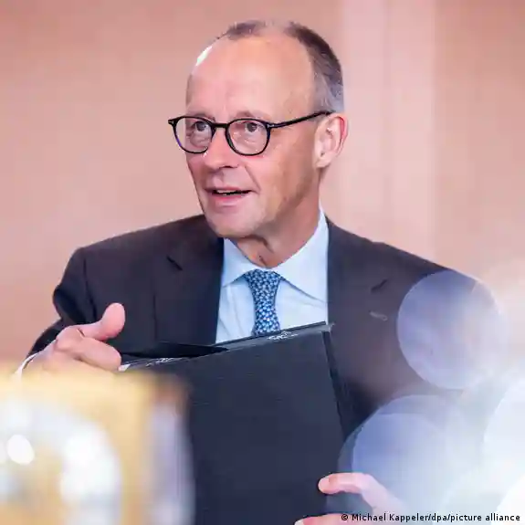 دعا فريديريش ميرتس إلى إعادة لاجئين سوريين إلى بلادهم على اعتبار أنّ "الحرب الأهلية في سوريا انتهت".صورة من: Michael Kappeler/dpa/picture alliance