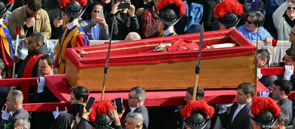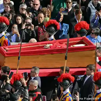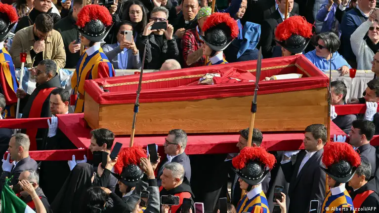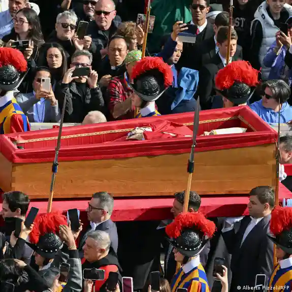 نقل جثمان البابا فرنسيس إلى كاتدرائية القديس بطرس حيث سيتقاطر المؤمنون لإلقاء آخر نظرة الوداع عليه قبل مراسم جنازة حاشدة سيحضرها العديد من قادة العالم.صورة من: Alberto Pizzoli/AFP