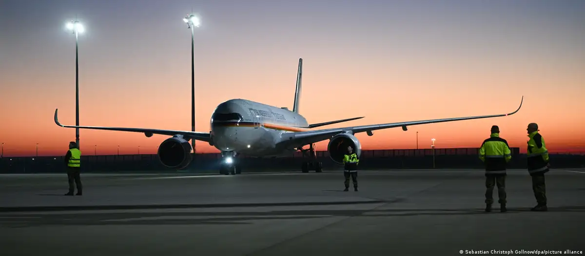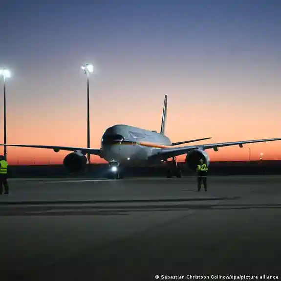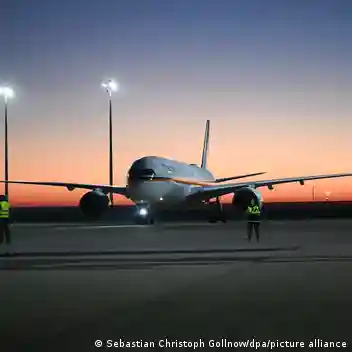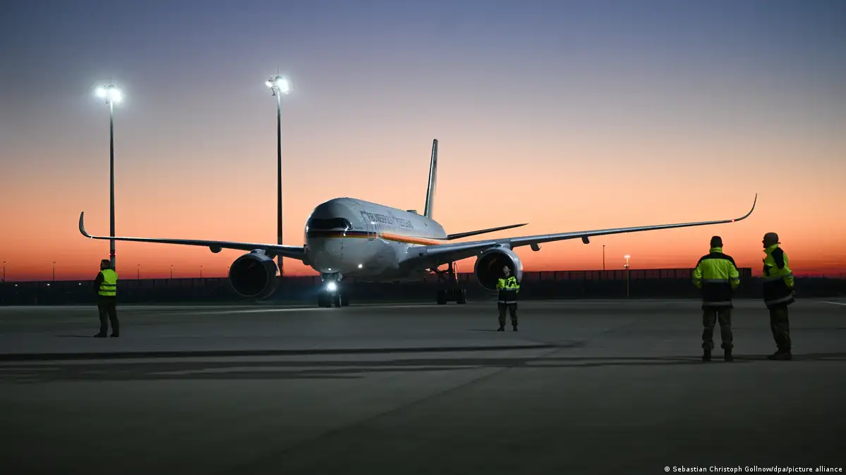 وهبطت الطائرة في العاصمة الألمانية برلين في وقت مبكر من مساء اليوم الخميس، وعلى متنها 174 شخصا حسبما ذكرت الوزارة.