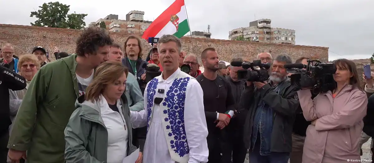 Облечен в традиционна бяла риза и елек, Петер Магяр пресече границата на Унгария с Румъния, заедно с група съмишленици и поддръжници. По обяд унгарският политик достигна целта си - северозападния румънски град Орадя. По пътя хората спираха да се снимат или да се ръкуват с него.