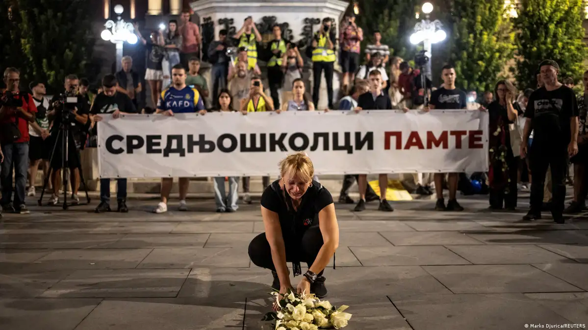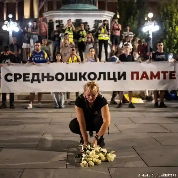 „Šesnaest gimnazijalaca prešlo je preko Savskog trga držeći u rukama bijele ruže", navodi Tagesšau ukazujući da su „demonstranti ćutanjem odali počast žrtvama“.