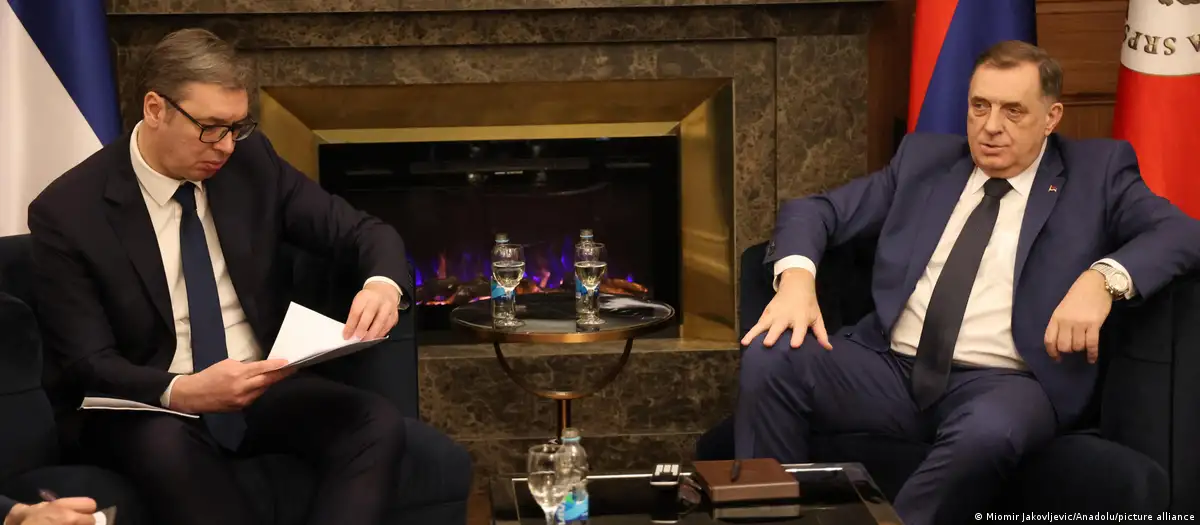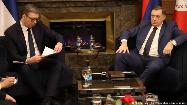 „Pozivam ih na razgovor, stojim na raspolaganju. Ako me pozovu, nudim im se da sutra dođem u Sarajevo, gdje god hoće ja ću doći. Ja sam spreman na razgovor", rekao je Dodik nakon sastanka sa Vučićem, ističući da RS nema nijedan ratni plan te da je spremna na razgovor.