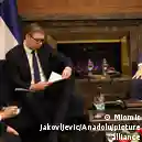 „Prva, da zamolim Dodika da pozove sve političke aktere u BiH, ali i predstavnike EU i SAD i Ruske Federacije i Kine, da pokrene dijalog, da pokrene razgovore. Znam da mu nije sada lako, ali da pokaže srpsko opredjeljenje za mir, za rješavanje problema kroz dijalog a ne kroz prijetnje“, rekao je Vučić, zamolivši u drugom zahtjevu za zajedništvo unutar srpskog naroda.