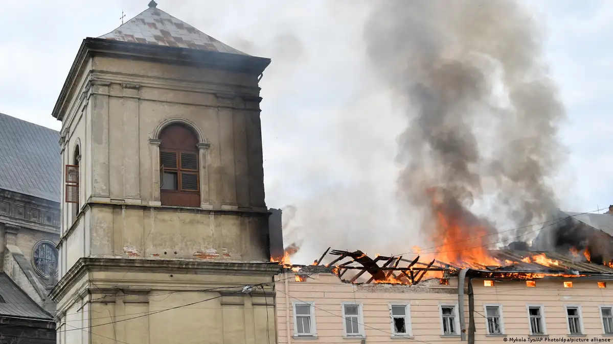 In Lwiw wurde das historische Zentrum beschädigt, das seit 2023 zu den UNESCO-Welterbestätten gehört. Der Gouverneur der Region Lwiw, Maksym Kosyzkyj, teilte mit, dass eine Drohne das ehemalige Bernhardiner-Kloster aus dem 17. Jahrhundert getroffen und mehrere Nebengebäude zerstört habe - das Kloster ist heute als St.-Andreas-Kirche bekannt und gehört zur ukrainischen griechisch-katholischen Kirche. Bei dem Angriff gingen auch mehrere Kirchenfenster zu Bruch - das bedeutendste Glasgemälde der Jungfrau Maria mit Kind blieb jedoch verschont.