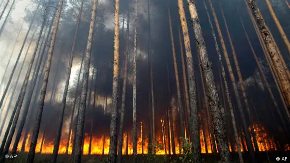 Hunderttausende Einsatzkräfte kämpfen gegen die verheerenden Wald- und Torfbrände in weiten Teilen Russlands, wie hier in der Nähe der Stadt Woronesch. Gegenwärtig gebe es 7000 Brände unterschiedlicher Größe, sagte der Chef des Nationalen Krisenzentrums, Wladimir Stepanow, am Montag (02.08.2010) im russischen Fernsehen. Es ist die schlimmste Hitze- und Trockenperiode in Russland seit mehr als 130 Jahren. Meteorologen sagen voraus, dass die Temperaturen bis zum Ende der Woche bis auf 40 Grad Celsius steigen sollen. (nis/dpa, afp)