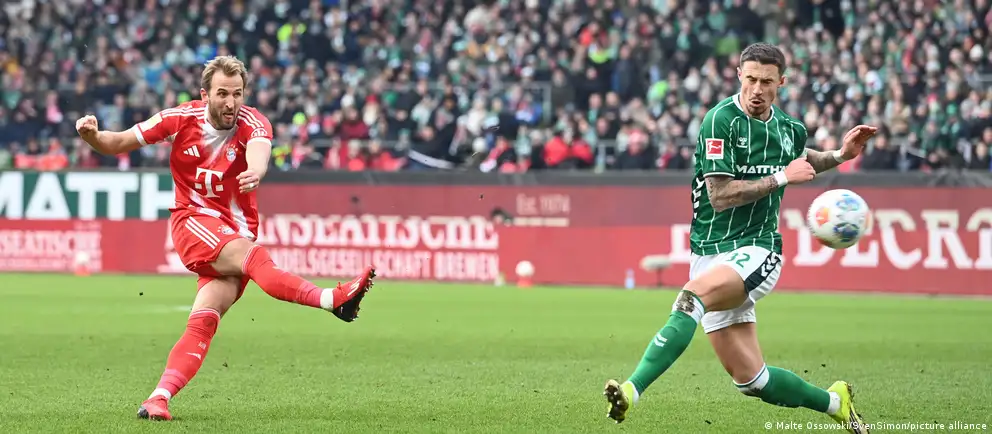Bayern-Torjäger Harry Kane (l.) erzielt gegen Bremen seine Bundesligatreffer 25 und 26 in dieser SaisonBild: Malte Ossowski/SvenSimon/picture alliance