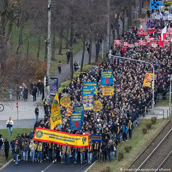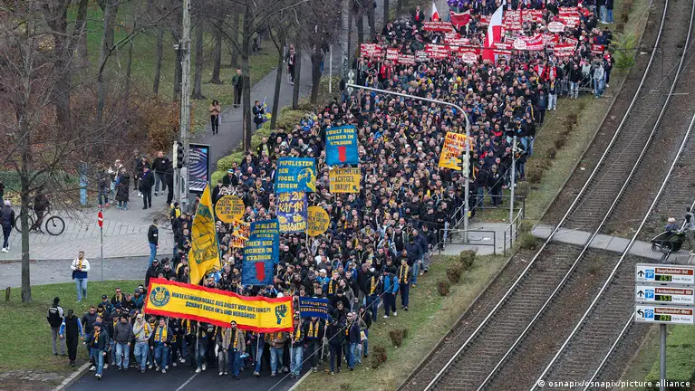 In Leipzig im Bundesland Sachsen sind mehrere Tausend Fußballanhänger aus ganz Deutschland auf die Straße gegangen. Unter dem Motto "Der Fußball ist sicher! Schluss mit Populismus - Ja zur Fankultur!" haben sie gegen schärfere Sicherheitsmaßnahmen in den Stadien demonstriert. Dazu aufgerufen hatte das Netzwerk "Fanszenen Deutschlands".