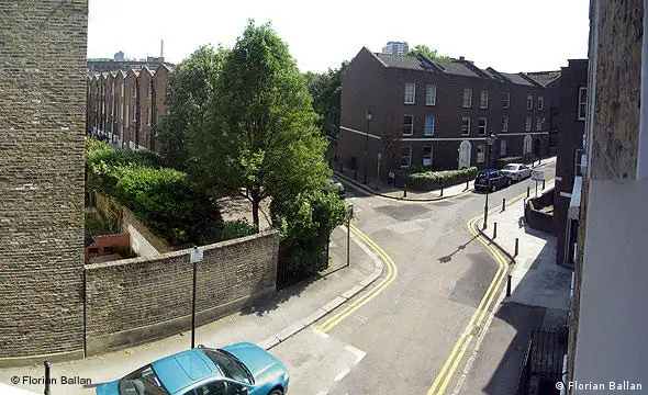 "Die Straße quer vor dem Haus heißt 'Friendstreet' und befindet sich in London-Islington. Als meine Freundin und ich auf Wohnungsbesichtigung waren, gefiel uns der Name so gut, dass wir uns schon fast entschlossen hatten, die Wohnung zu nehmen, bevor wir sie überhaupt betreten hatten. Die 'freundliche' Straße wirkt auch deswegen so ruhig, weil seit mehreren Monaten etliche Wohnungen und Häuser in ihr leer stehen. Obwohl wir uns mitten in London befinden, kann man wunderbar bei offenem Fenster schlafen und klare Luft atmen."
