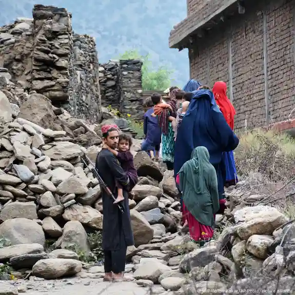 Afghanistan Mazar Dara 2025 | Anwohner gehen an zerstörten Häusern nach Erdbeben vorbei