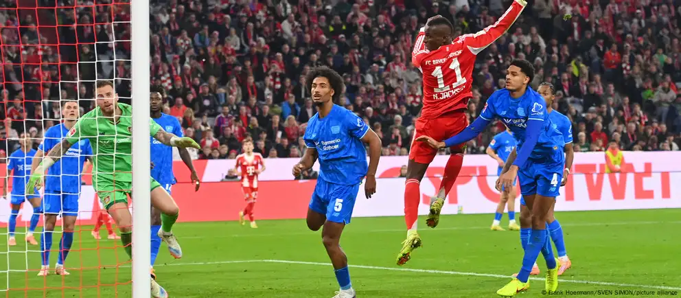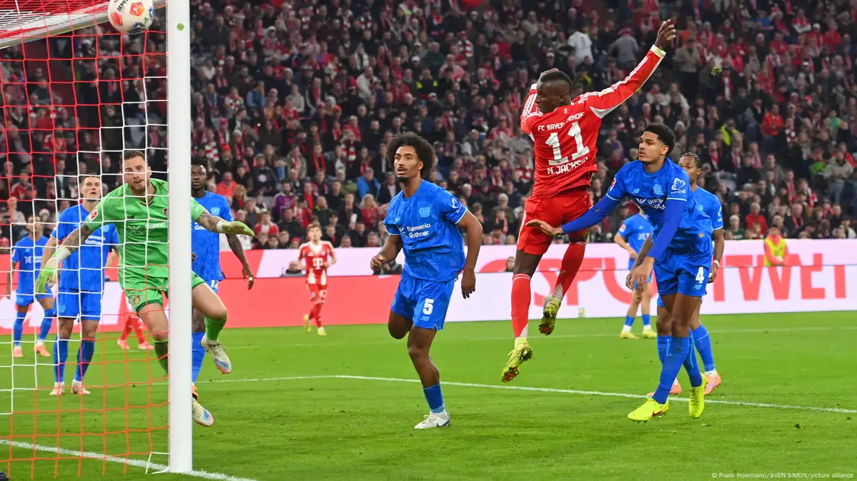 Harry Kane auf der Bank - Bayerns "Ersatztorjäger" Nicolas Jackson trifft per Kopfball zum 2:0 gegen Bayer LeverkusenBild: Frank Hoermann/SVEN SIMON/picture alliance