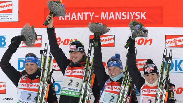 Dank einer überragenden Magdalena Neuner hat die deutsche Biathlon-Staffel der Frauen zum WM-Abschluss im russischen Chanty Mansijsk noch einmal Gold gewonnen. Nach 4 x 6 km mussten sich die Ukraine und Frankreich Andrea Henkel, Miriam Gössner, Tina Bachmann und eben Magdalena Neuner geschlagen geben. Mit ihren nun zehn Goldmedaillen ist Neuner die erfolgreichste WM-Biathletin der Geschichte. Durch den Staffelsieg gewann Deutschland mit viermal Gold auch die Nationenwertung der WM.