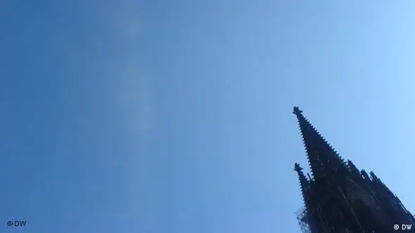 Bild: DWOhne Flugverkehr gab es am Wochenende keine Kondensstreifen, die sich normalerweise zu dünnen Schleierwolken ausbreiten. Stahlblau wie lange nicht mehr präsentierte sich der Himmel in Mitteleuropa (hier über Köln). Die Hochdruckwetterlage sorgte mit trockener Luft für klaren Durchblick. Am Montag ist der Zauber allerdings schon wieder eingetrübt. Feuchte Luft sorgt für diesige Stimmung in der Kölner Bucht.