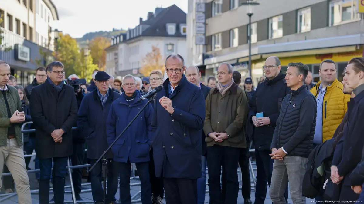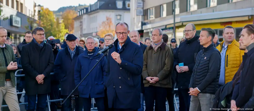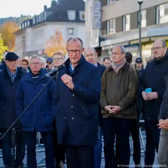Bei einem Bürgerdialog in Meschede im Sauerland sagte Friedrich Merz, es werde keine Zusammenarbeit mit einer Partei geben, die alles infrage stelle, was Deutschland in den vergangenen Jahrzehnten stark gemacht habe - "jedenfalls nicht unter mir als dem Parteivorsitzenden der CDU Deutschlands".